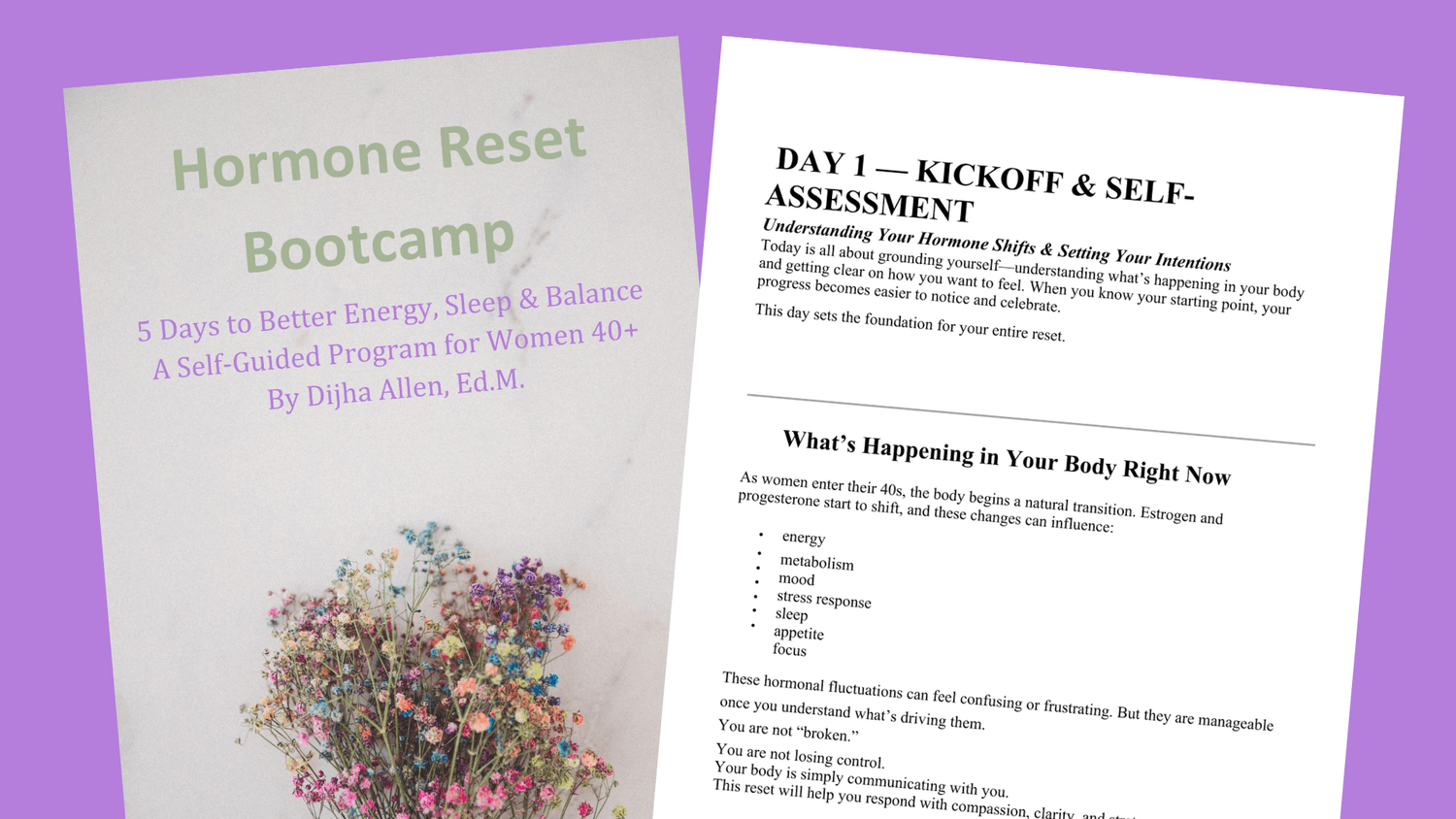 The Hormone Reset Bootcamp is a self-guided, realistic 5-day experience designed to help you reconnect with your body, calm your nervous system, and begin supporting your hormones in a way that actually fits your life.